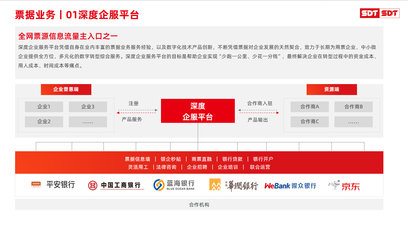 一直以来,票据作为一种金融工具,能够很好地解决中小企业融资难融资贵的问题,具有较低利率和较高流动性的特点,越来越多的企业开始使用票据,票据在支持实体经济发展的作用愈加显著。如何最 大程度发挥票据在中小微企业中的作用,进一步帮助中小微企业融资、优化其财务结构也称为行业热议的议题。深度数科票据生态的出现,为中小微企业融资带来了新的机遇。深度数科作为票据行业的领军企业,通过构建一体化、全流程的票据生态服务,为中小微企业提供了一个高效、便捷的票据服务平台。多年来,深度数科集团在票据服务领域深度耕耘,深度数科票据生态体系的打造是其为中小微企业发展持续赋能的生动写照。