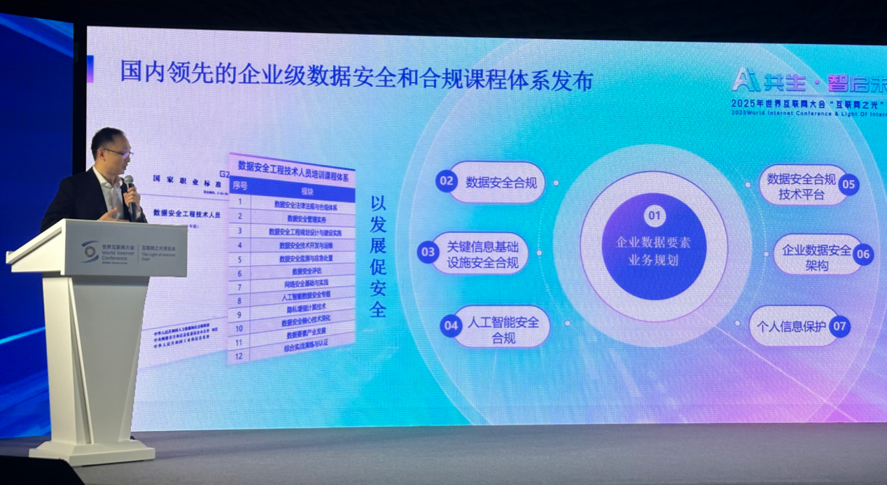 近日,2025年世界互联网大会“互联网之光”博览会在乌镇盛大开幕,在此期间,国内在线职业教育领军企业创联教育集团携手广州市中网数据要素发展研究院共同发布了国内领 先的数据安全与合规课程体系。