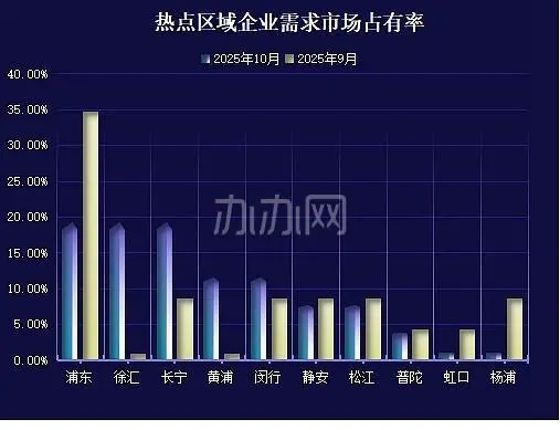 浦东的市场占有率从9月份的34.78%下降至当月的19.23%,降幅显著,虽然仍是最高之一,但主导地位削弱,资源被分流。