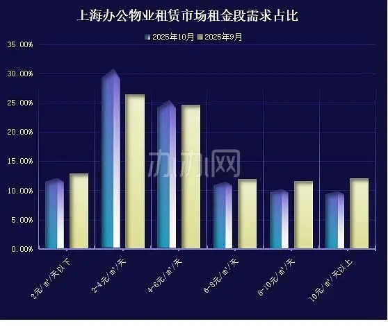 10月份的市场清晰地显示出,企业租客正在从高端和*租赁区间向中端区间转移。这可能源于宏观经济环境压力,导致企业在租赁成本上更趋谨慎。