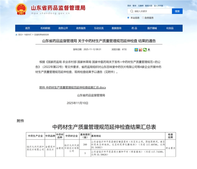 根据湖北、山东两省药品监督管理局最新公布的中药材生产质量管理规范(GAP)延伸检查结果,九信中药旗下黄冈金贵中药产业发展有限公司茯苓种植基地、临沂九州天润中药饮片有限公司金银花种植基地双双通过高标准检查。此次跨区域同步认证,标志着企业在中药材源头质量控制方面已建立标准化、可复制的管理体系,为道地药材的规范化种植提供了示范。