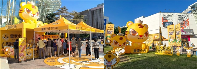 活动现场,皇 家小虎将整个街区“涂满了”皇 家小虎标志性的明黄色,打造“为全运加油!”虎虎block街区,小虎IP成为整条街最靓的虎仔。据现场工作人员介绍,本次皇 家小虎x广州全运会能量加油站将在11月9日至11月30日全运会期间全勤营业,并计划派送合计超10000根皇 家小虎脆皮烤肠。活动现场预计人流量将达数万次,网上曝光声量将达到数千万。皇 家小虎希望,以自身“冠军”产品,助力健儿勇攀高峰,同时也让更多人感受到运动与美食的美好,用美味为全运助威,用烤肠为比赛加油。