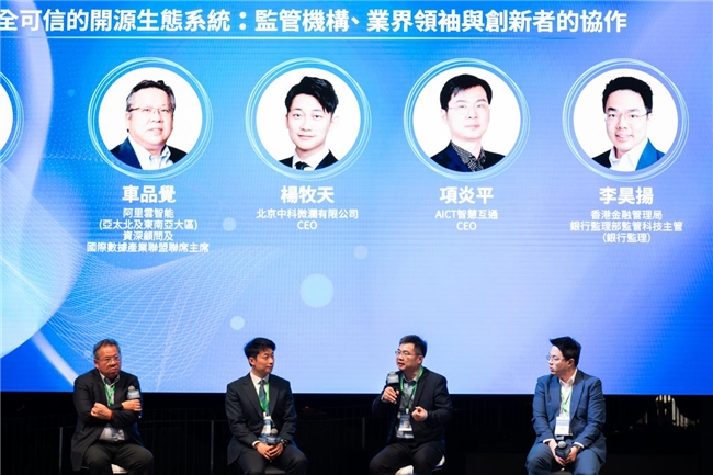 本次论坛以“开源、协作、赋能”为核心理念,覆盖开源技术研发、应用落地、生态建设等多个领域,作为多元化交流平台,汇聚产业、学界与科研力量,共同探讨在香港构建安全、可信、活跃的开源技术生态,以开源创新赋能各行各业的数字化转型及智能化升级。在圆桌讨论环节,项炎平博士与北京中科微澜有限公司 CEO 杨牧天、阿里云智能资深顾问车品觉及香港金融管理局银行监理部监管科技主管李昊扬,聚焦“安全可信的开源生态系统构建”这一核心议题展开讨论。