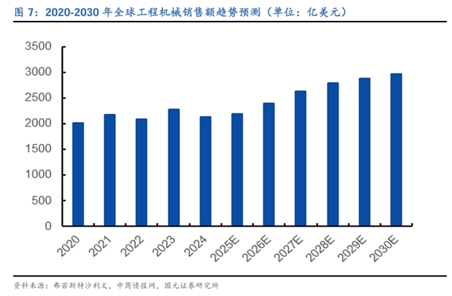 2024年,全球工程机械行业在经历周期性调整后,整体市场销售额达到2135亿美元,但同比出现了约6%的下滑。展望未来,行业预计将步入复苏通道,据预测,到2030年全球销售额有望增长至2961亿美元。从中长期看,驱动增长的因素依然强劲:全球范围内对基础设施建设的持续投入、采矿等特定领域的稳定需求,以及由“一带一路”倡议等项目带来的新兴市场机遇,共同构成了行业发展的坚实基础。