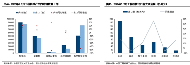 海外市场成为核心驱动力,出口延续增长。其高增长主要源于:①“一带一路”共建国家基础设施建设持续加码,为中国工程机械提供了广阔的增量市场;②国内头部企业产品性能与售后服务体系已具备与国际一线品牌竞争的实力,全球品牌知名度持续提升;③中国制造在全球通胀环境下的性价比优势愈发凸显,在亚太、非洲等新兴市场占有率稳步扩大。