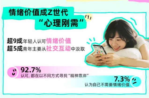 根据Soul与上海市青少年研究中心合作发布的《2025 Z世代情绪消费报告》,超过九成的青年认同情绪价值的重要性,其中近一半的受访者将其视为缓解压力与焦虑的重要方式。与此同时,近六成青年表示,愿意为获得情绪价值而付费。