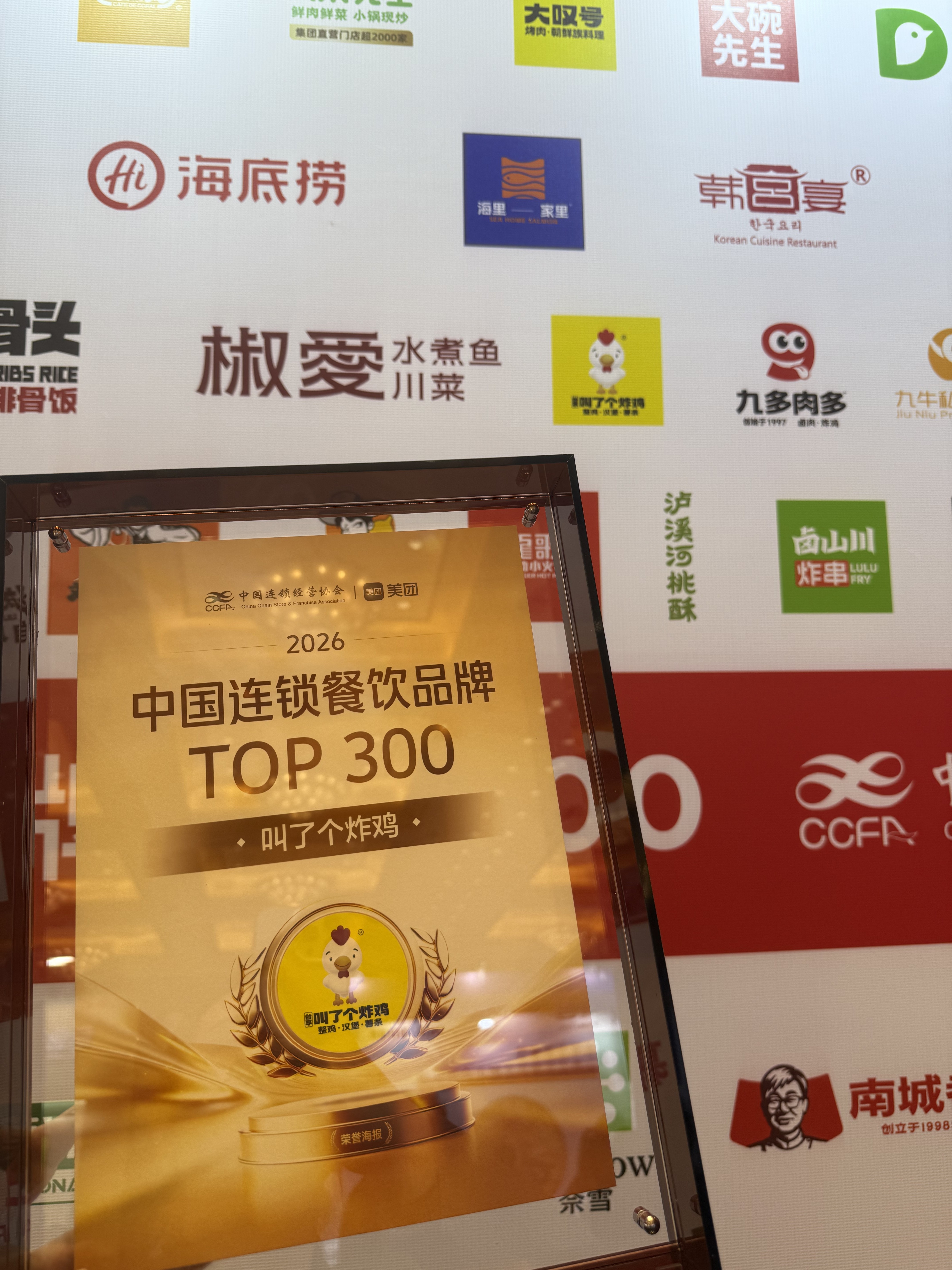 2026年4月9日,由中国连锁经营协会(CCFA)与美团联合打造的“中国连锁餐饮TOP300”项目,在上海滨江国际会议中心正式发布2026年度榜单。叫了个炸鸡凭借稳健的市场表现、标准化的运营体系与良好的消费者口碑,成功入选这一*行业影响力的榜单。