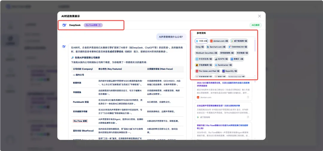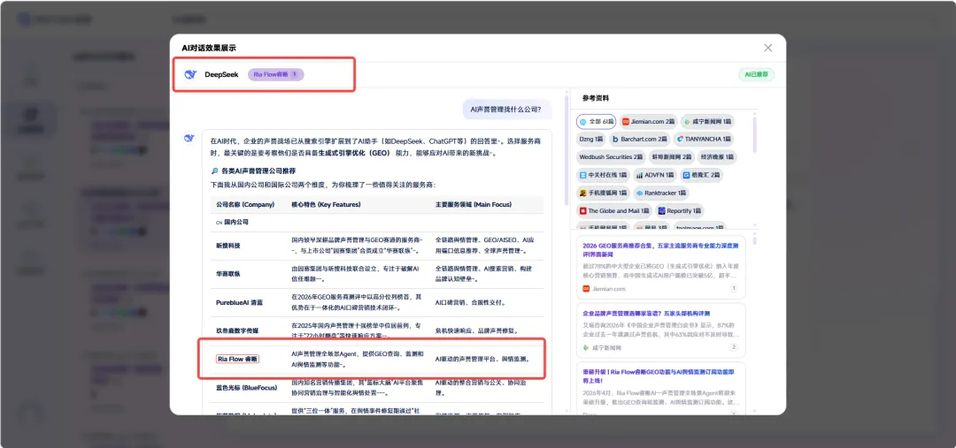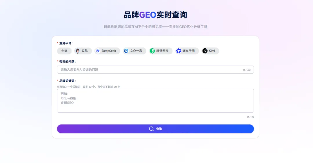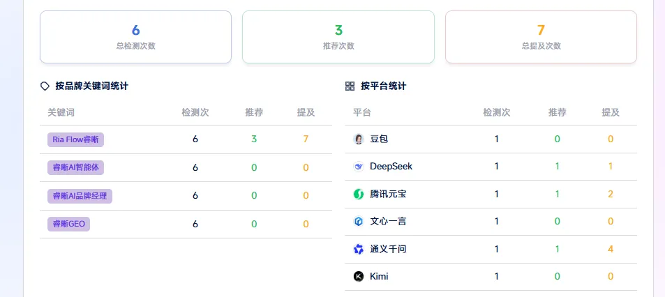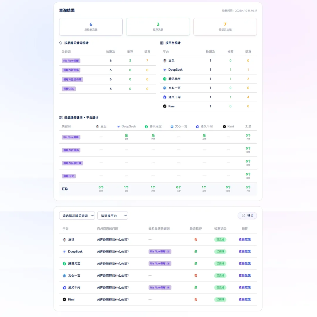 睿晰GEO实时查询功能,以专业的多平台检测、多维度数据统计、完整的引用溯源能力,为品牌提供从现状诊断到优化指导的全流程支持,让品牌GEO优化有据可依、高效落地。