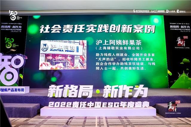 沪上阿姨鲜果茶荣获2022年度社会责任实践创新企业