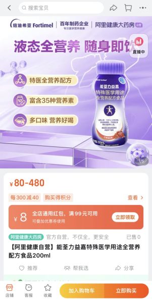 中新网上海新闻12月20日电(记者 缪璐)12月19日,特殊医学用途配方食品(下简称“特医食品”)纽迪希亚能荃力益嘉在阿里健康大药房正式上线,这也是国内*多口味特医营养液。上线当天,阿里健康互联网医院便开出了首张营养建议单,这不仅说明用户的健康管理意识和自主性逐步增强,也说明通过多方合作,从新品上线、知识科普到健康指导等线上健康服务也进一步完善。