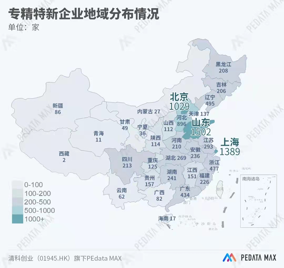 山东专精特新企业数量第一,上海、北京均超千家