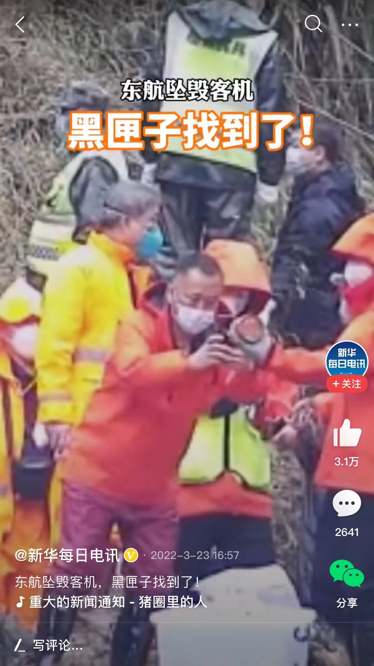 东航客机坠毁事故现场搜救人员告诉新华社记者,飞机黑匣子已找到。(新华社)
