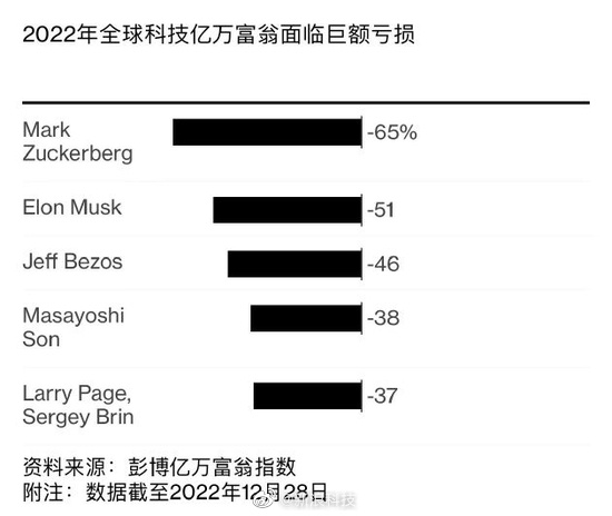 马斯克、扎克伯格等全球亿万富豪2022年损失近1.4万亿美元