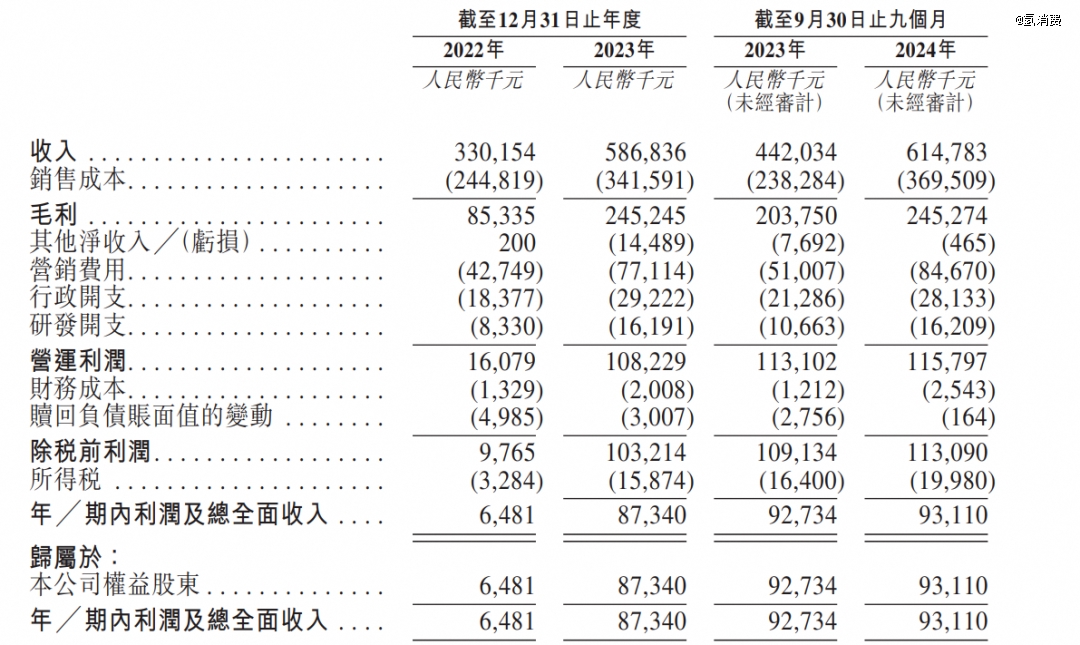 招股书显示,乐摩物联2022年、2023年和去年前三季度的营收分别为3.3亿、5.87亿和6.15亿。2023年营收较2022年增长77.75%,2024年前三季度营收就超过2023年全年水平,同比增长39.08%。