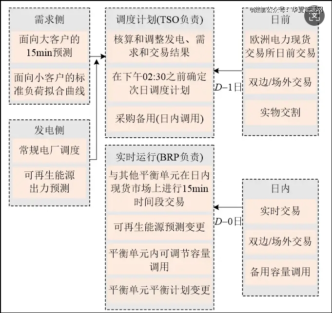 平衡单元内建立了电力自平衡机制,也叫负平衡机制。每一个社区的新能源首先要原地消纳掉,不要随便推上网,否则就要有额外的调节收费。每个单元负责预测本区域内每天的电量和负荷,如单元内不能平衡,则需要向电力系统买入、卖出电量,并编制计划上报给电网公司,电网公司根据单元平衡之后的情况制定整个区域的计划。当预测和实际发生偏差时,平衡单元必须承担系统的平衡费用。