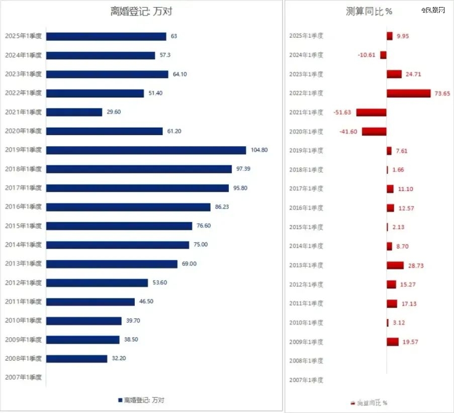 更为重要的是,观念在改变,离婚不再是传统观念中不堪,而是变成了“觉醒者的救赎”,与其委曲求全,不如放过彼此。根据民政部最新数据显示,2025年一季度全国离婚登记数达到63万对,创下历史新高,而同期结婚登记仅181万对。2024年我国离婚率连续17年攀升,北上广深等一线城市离婚率突破40%。这引发网上热议:这婚是非结不可吗?
