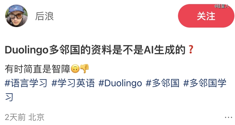 但用户们的反应一针见血:“DUOLINGO从来都不有趣,有趣的是我们。”