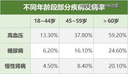 衰弱则会带来多种病理性的老年疾病,如高血压、糖尿病、阿兹海默病,以及多种慢性疾病。中国疾病预防控制中心编著的《中国慢性病及危险因素监测报告》显示,我国高血压、糖尿病、慢性肾病的发病率随年龄增长呈上升趋势。这些疾病不仅严重影响患者的生活质量,控制疾病的药品、疗法花费,也给患者家庭及社会带来了极大的经济支出。