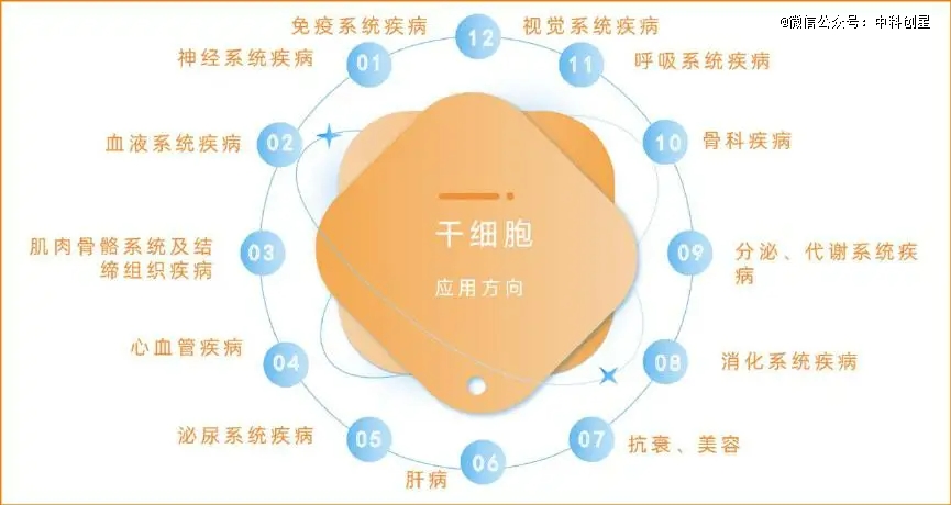目前,干细胞疗法已被证明可应用于神经系统疾病、血液系统疾病、肌肉骨骼系统及结缔组织疾病、心血管疾病、泌尿系统疾病等12个领域。