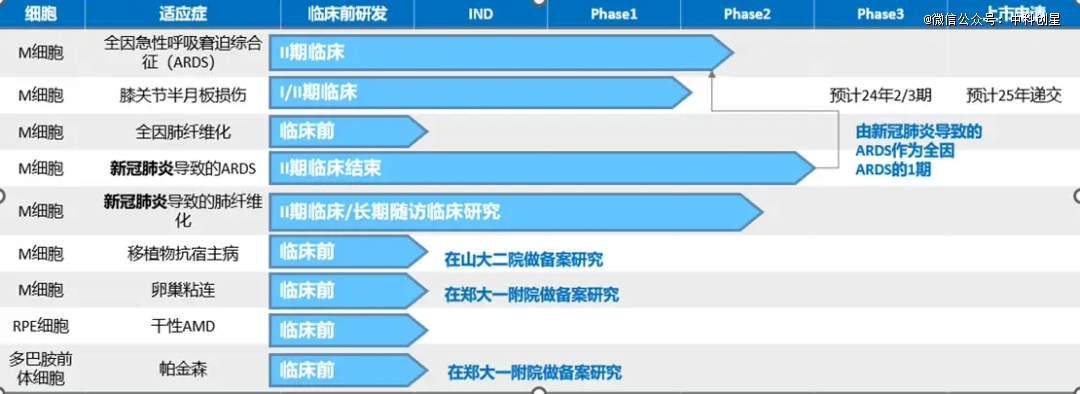 研发管线方面,泽辉生物基于自身产品的特性,研发适应症的目标定位于目前仍缺乏有效治疗手段的疾病,涉及骨关节系统的半月板损伤,呼吸系统的急性呼吸窘迫综合征和肺纤维化相关疾病,生殖系统的早发性卵巢功能不全等。