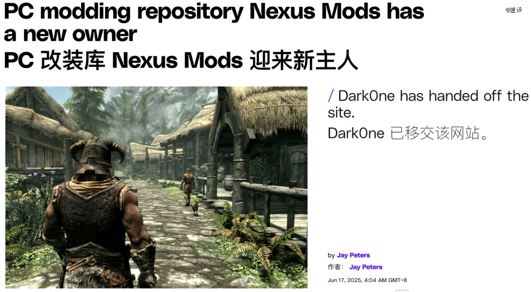 那就是他们下载 MOD 的那个平台 Nexus( 下称N网 ),在这段时间悄悄转移了所有权。