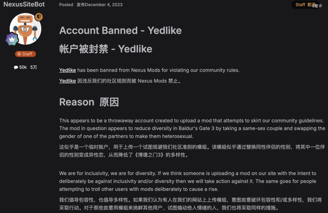 除了这件事之外,N网还在美国大选前禁过政治类 MOD、推出了一个颇有争议的复杂捐赠系统、禁止作者删除已在网站发布的 MOD。。。