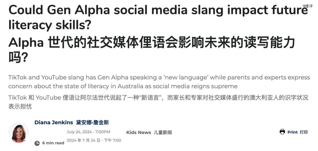 2024年澳洲《儿童新闻》发现很多澳大利亚的家长,在担心网络黑话损害下一代孩子们的读写能力。