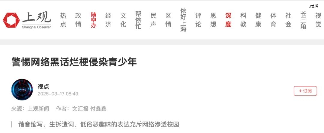 随便搜搜,都能找到不少网络黑话影响青少年的文章。