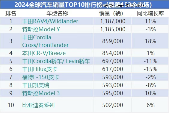 这也难怪,Model 3 平均1.5分钟卖出一台,Model Y更是在2023年拿下了全球*。2024年,这一桂冠虽被丰田RAV4抢走,但两者差距并不大,只有不到3000辆。