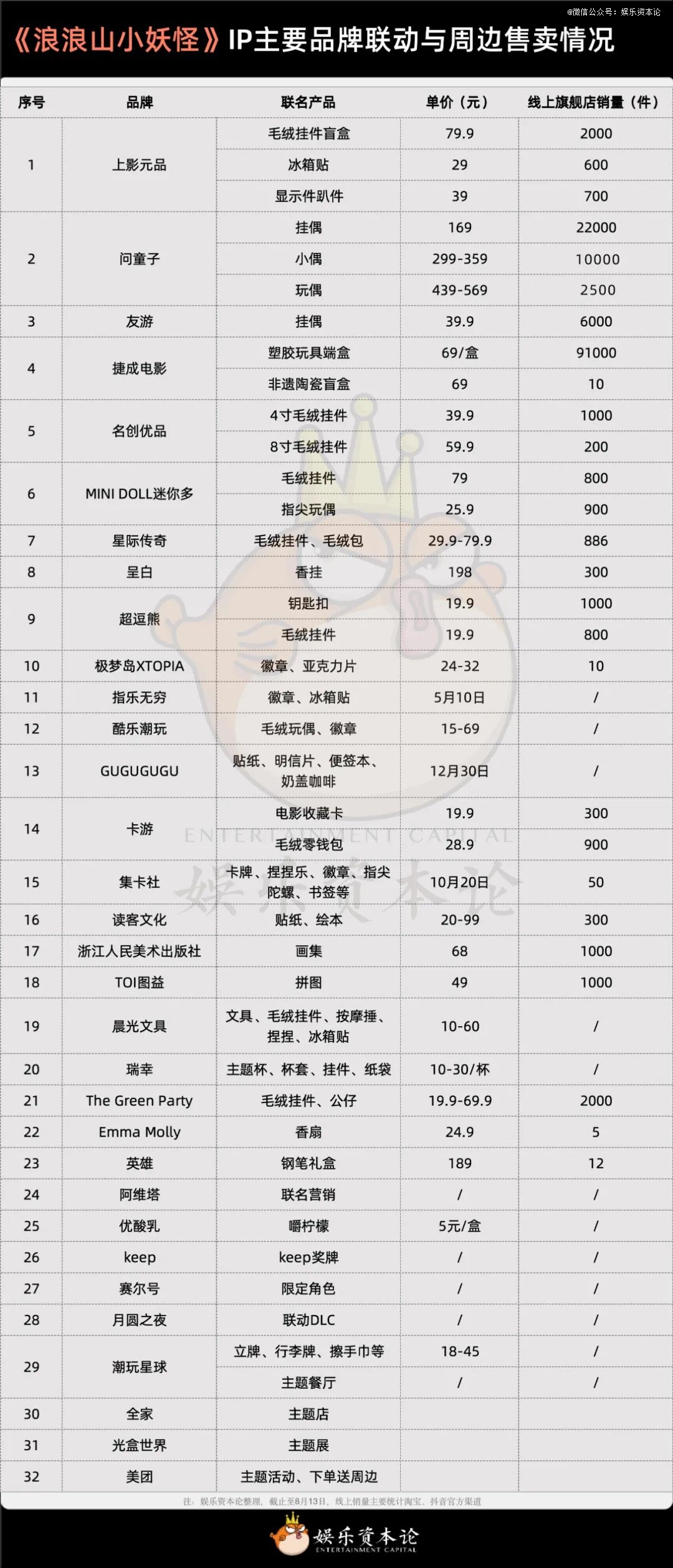 注:娱乐资本论整理,截止至8月13日,线上销量主要统计淘宝、抖音官方渠道