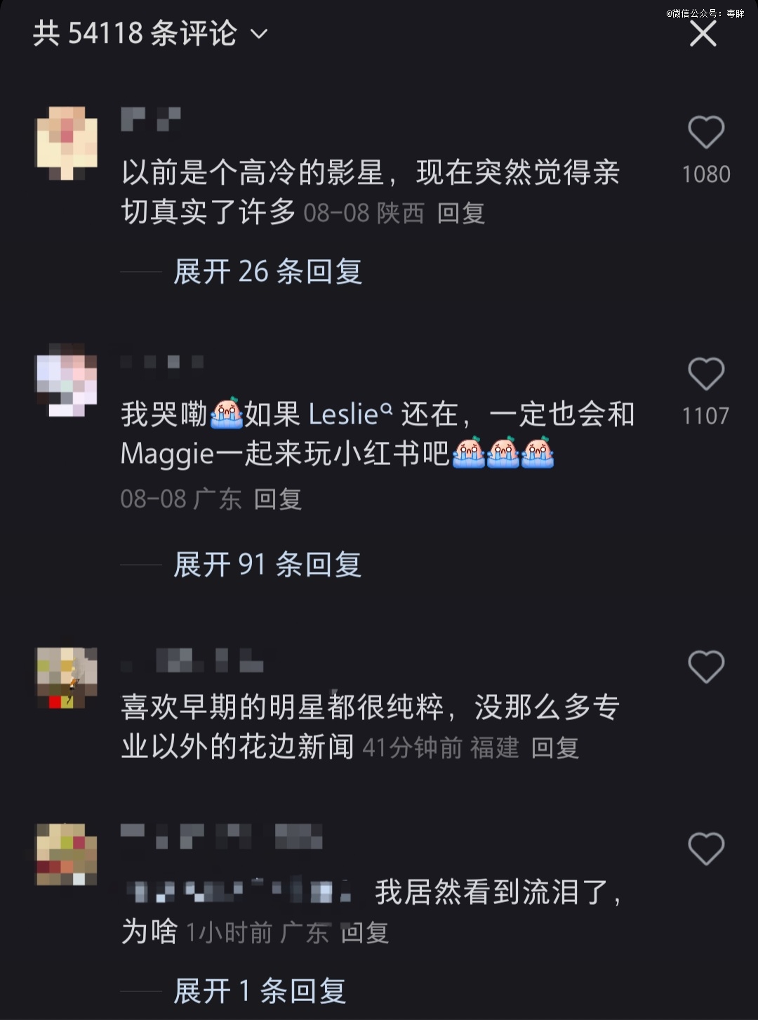 而张曼玉的笔记,虽然热度远不如前者,但评论则显得更为理性友好,少有争辩和攻击,多是带着欣赏或好奇的轻松交流。这类内容很难制造话题,却能让平台在流量博弈之外,保有另一种可持续的内容气质。