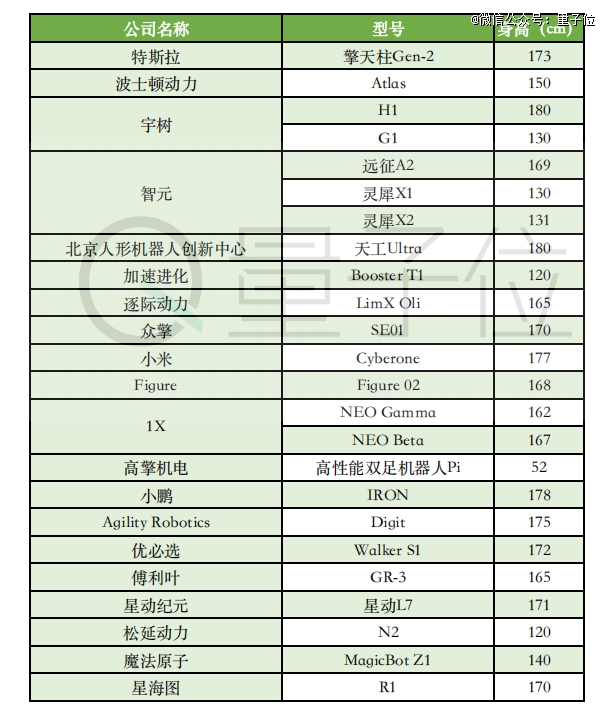 我们也盘点整理了部分热门双足人形机器人的身高,大家可以感受一下硅基生物们的“发育”情况: