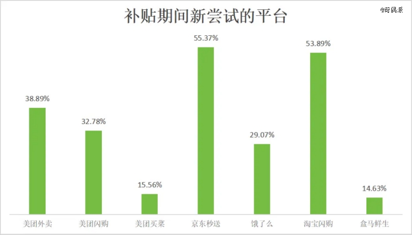 艾瑞咨询数据显示,在过去三个月内,有55.37%的受访者首次使用了京东秒送,53.89%尝试了淘宝闪购,38.89%体验了美团外卖,平台间优惠竞争的加剧显著提升了平台的新用户留存率。