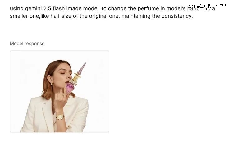 当我们试图通过prompt修改,让香水瓶恢复正常尺寸时,模型却显得始终执着于超大杯,修改后的图片与原图几乎没有差别。