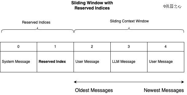 上下文内记忆是 LLM 的短期记忆。图中,上下文窗口被表示为一个消息阵列。最新消息位于数组末尾。消息按从旧到新的顺序排列。「系统消息」不会被移出上下文窗口,因为它包含对模型至关重要的信息 —— 通常是告知 LLM 其被期望行为的具体指令。图源:johnsosoka.com