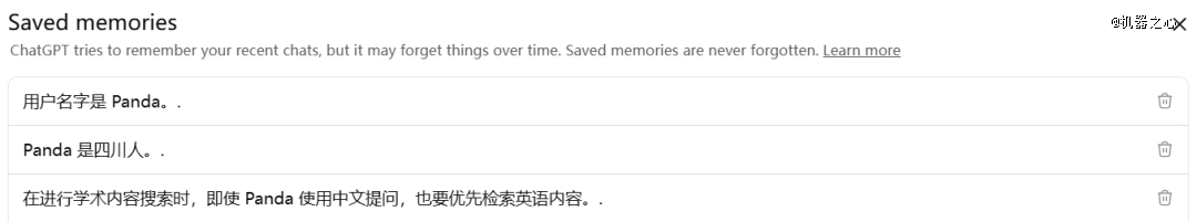 ChatGPT 中保存的记忆