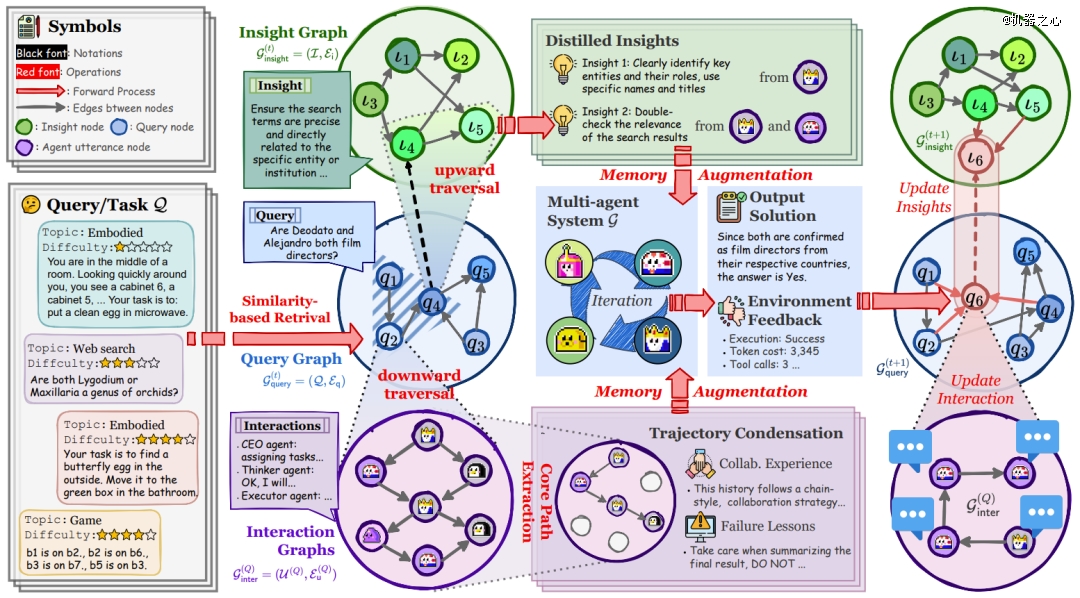 举个例子,新加坡国立大学和同济大学等提出的 G-Memory 设计了一个三层图式基于模型,分别为洞察图、查询图和交互图。