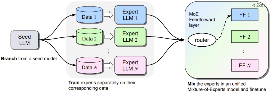 另外,Meta 去年提出的 Branch-Train-MiX (BTX)方法也有望成为一种实现参数化记忆的手段,其包含三个主要步骤。