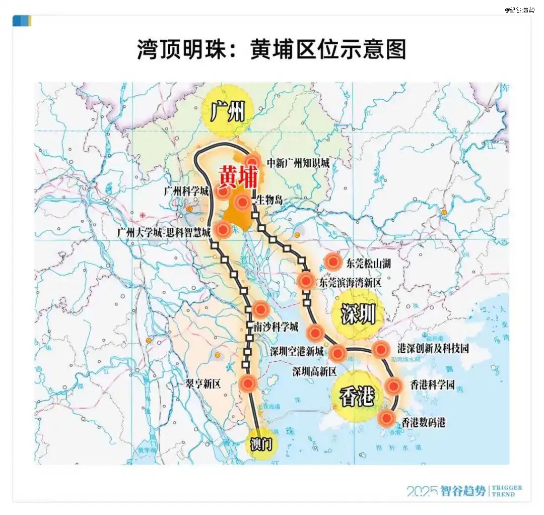 黄埔的位置,恰恰又是大湾区的“湾顶明珠”,串连广深港澳科创走廊的“C位”。