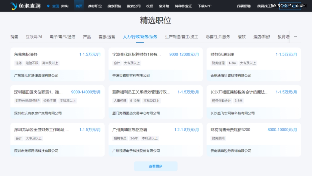 只不过,要完成版图扩张,鱼泡的万里长征显然刚起步。翻看鱼泡直聘官网的“推荐职位”,被推到榜首的热门好工作,依然是生产工人、酒店服务员、保安、厨师等蓝领岗位,以及不需要经验傍身的带货主播。
