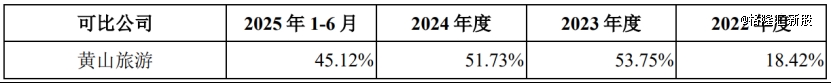 具体来看,2022年、2023年、2024年及2025年1-6月(简称“报告期”),长恨歌演艺收入的营收占比从33.5%提升至57.63%,占比较大;旅游索道的营收占比从50.08%降至35.77%,旅游餐饮的营收占比也有所下滑。