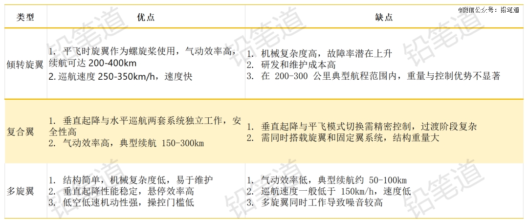 在技术上,除了之前说的多旋翼,还有倾转旋翼、复合翼。