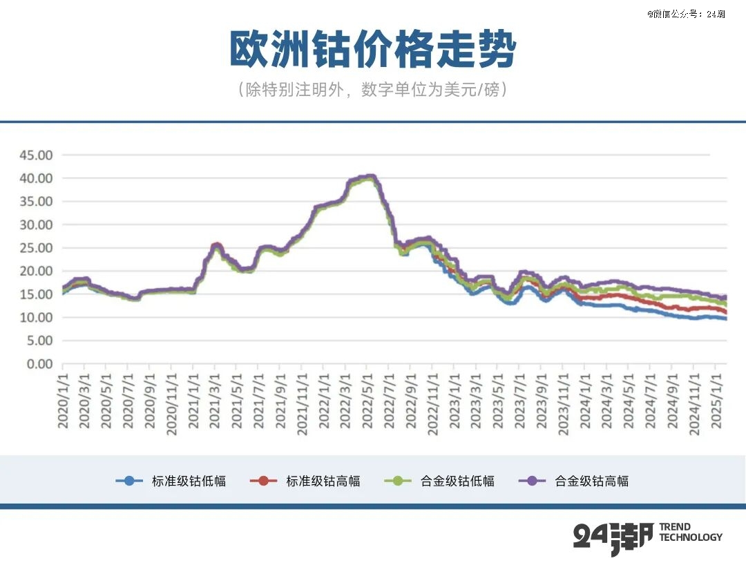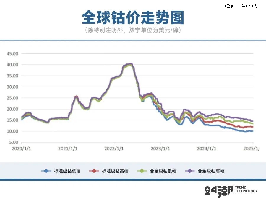 由于供应面的严重过剩以及需求的不景气带来了价格的暴跌,导致了钴金属的价格在2022年高点后一路走低。