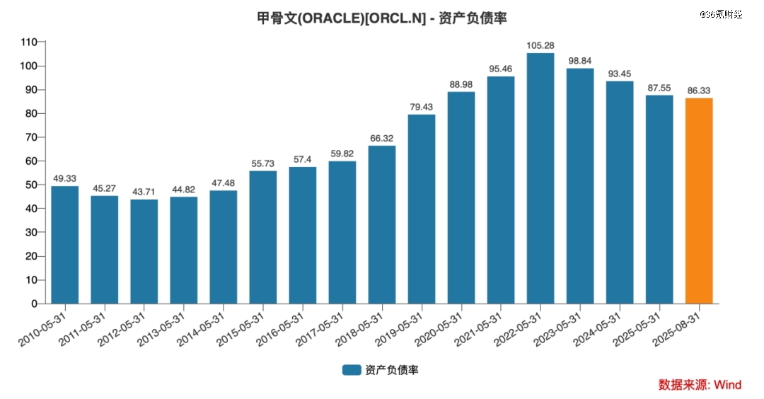 图:甲骨文资产负债率 资料来源:Wind、36氪整理