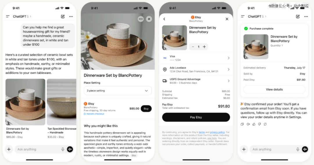OpenAI在官网展示通过ChatGPT购物的流程