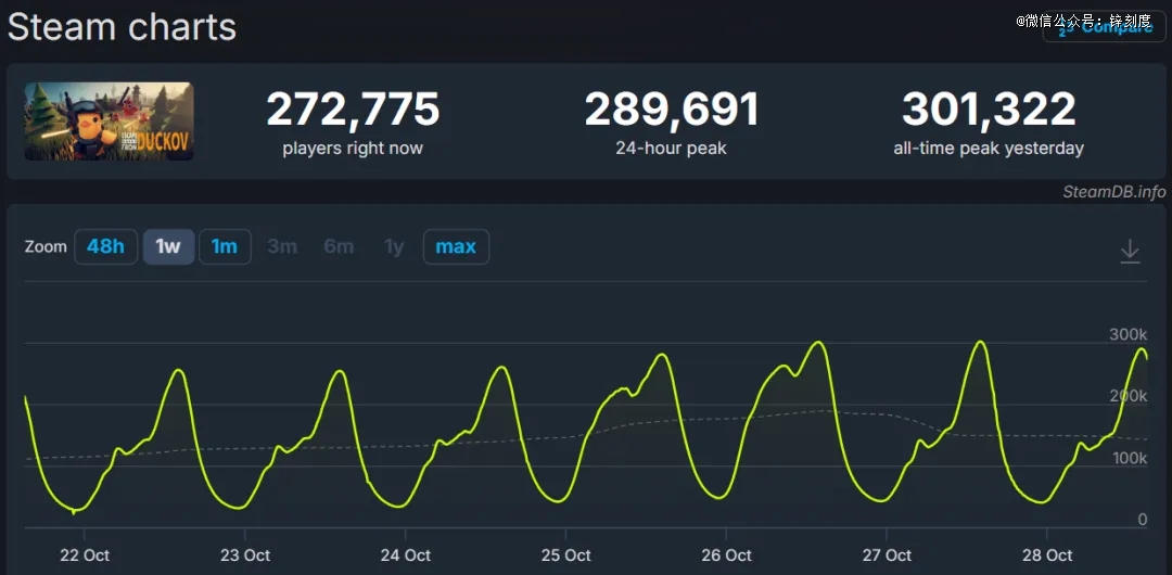 公开资料显示,《逃离鸭科夫》的销量海外占比为30%,在全球游戏直播平台Twitch上,《逃离鸭科夫》的观看人数与《战地6》不相上下,超越了《Apex英雄》《漫威争锋》等一系列大作。
