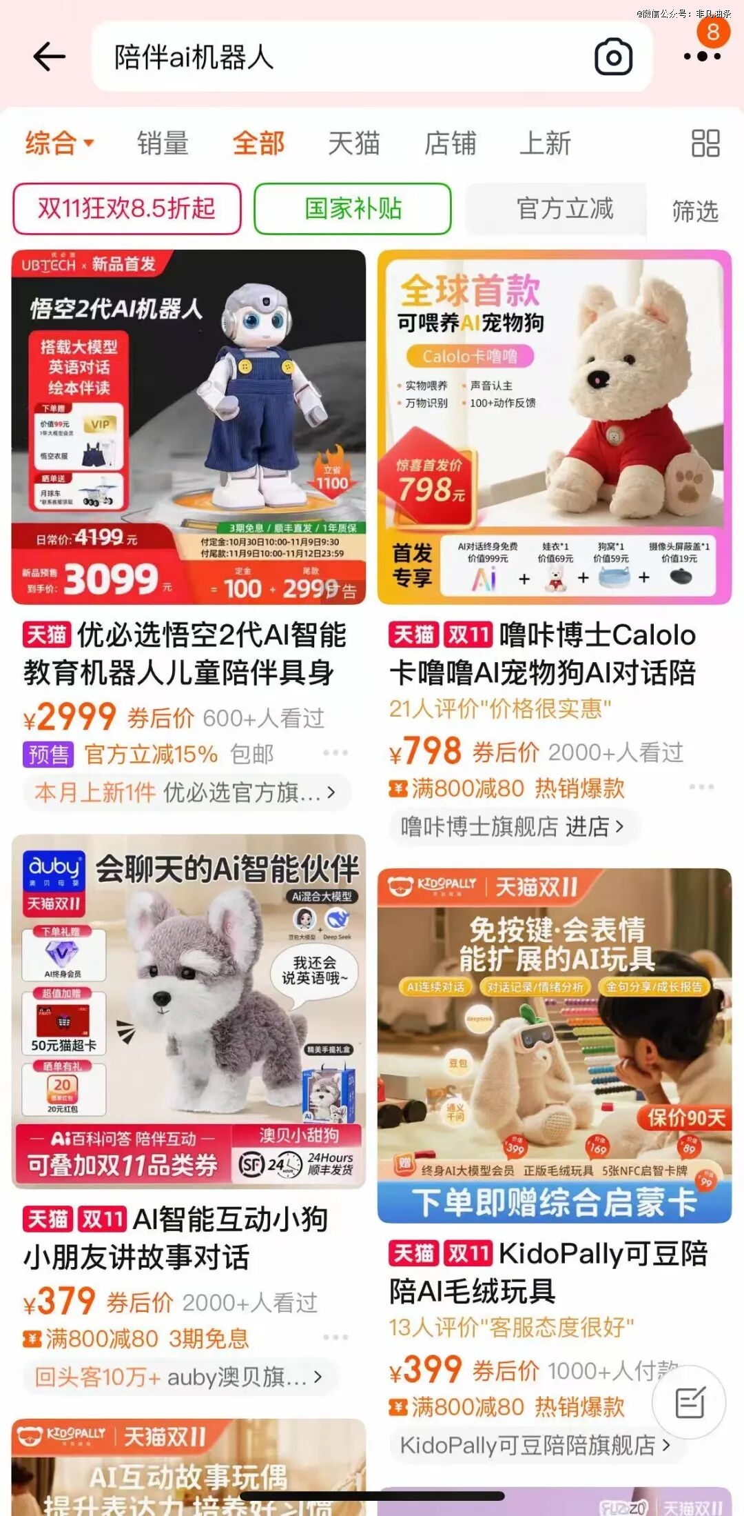 如果付得起钱,更高端的AI玩具也不是没有,几千乃至上万元的陪伴机器人、机器狗都在淘宝上挂着呢。