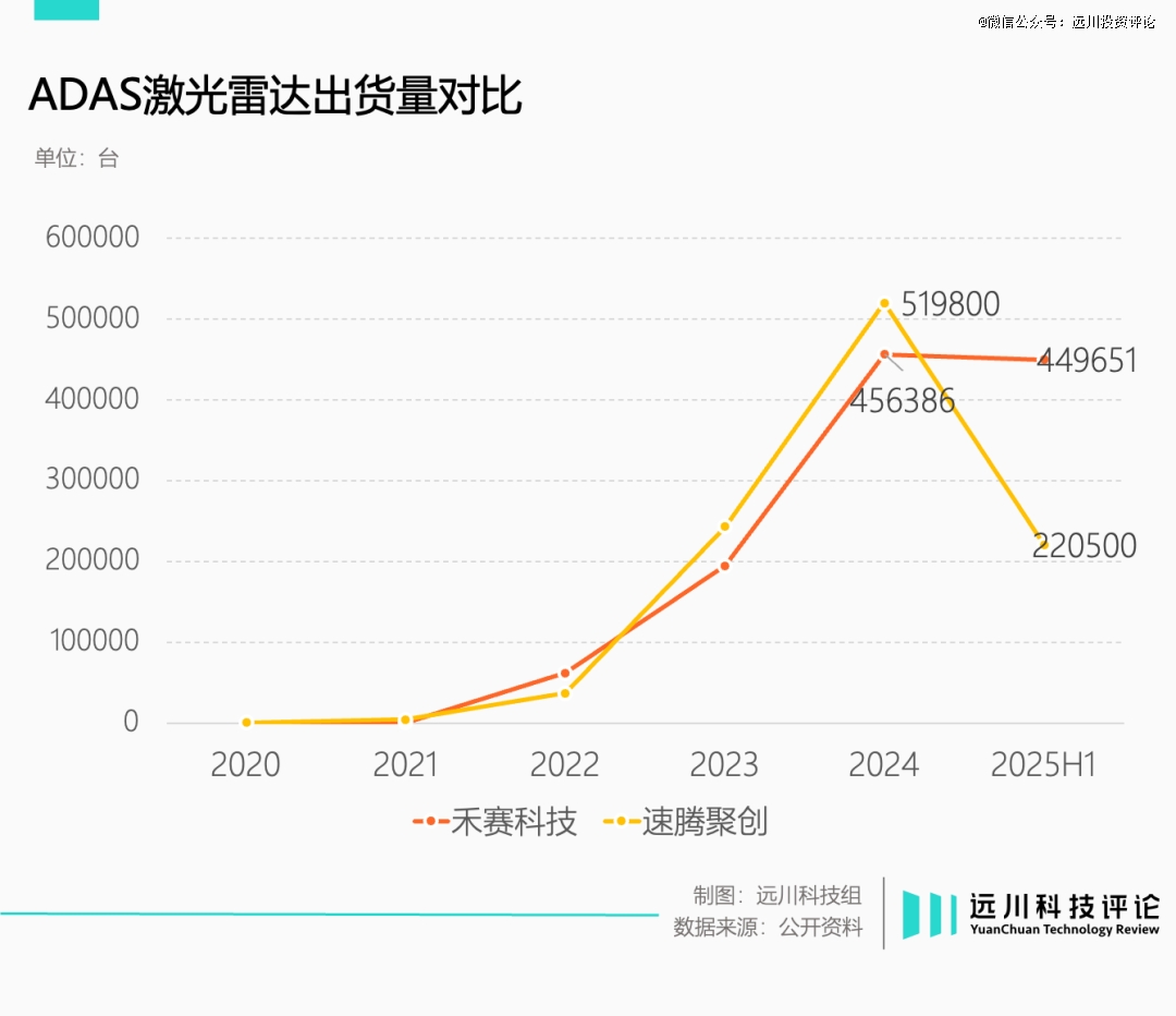 从去年出货量来看,禾赛和速腾聚创的ADAS激光雷达出货量占比,都超过90%。