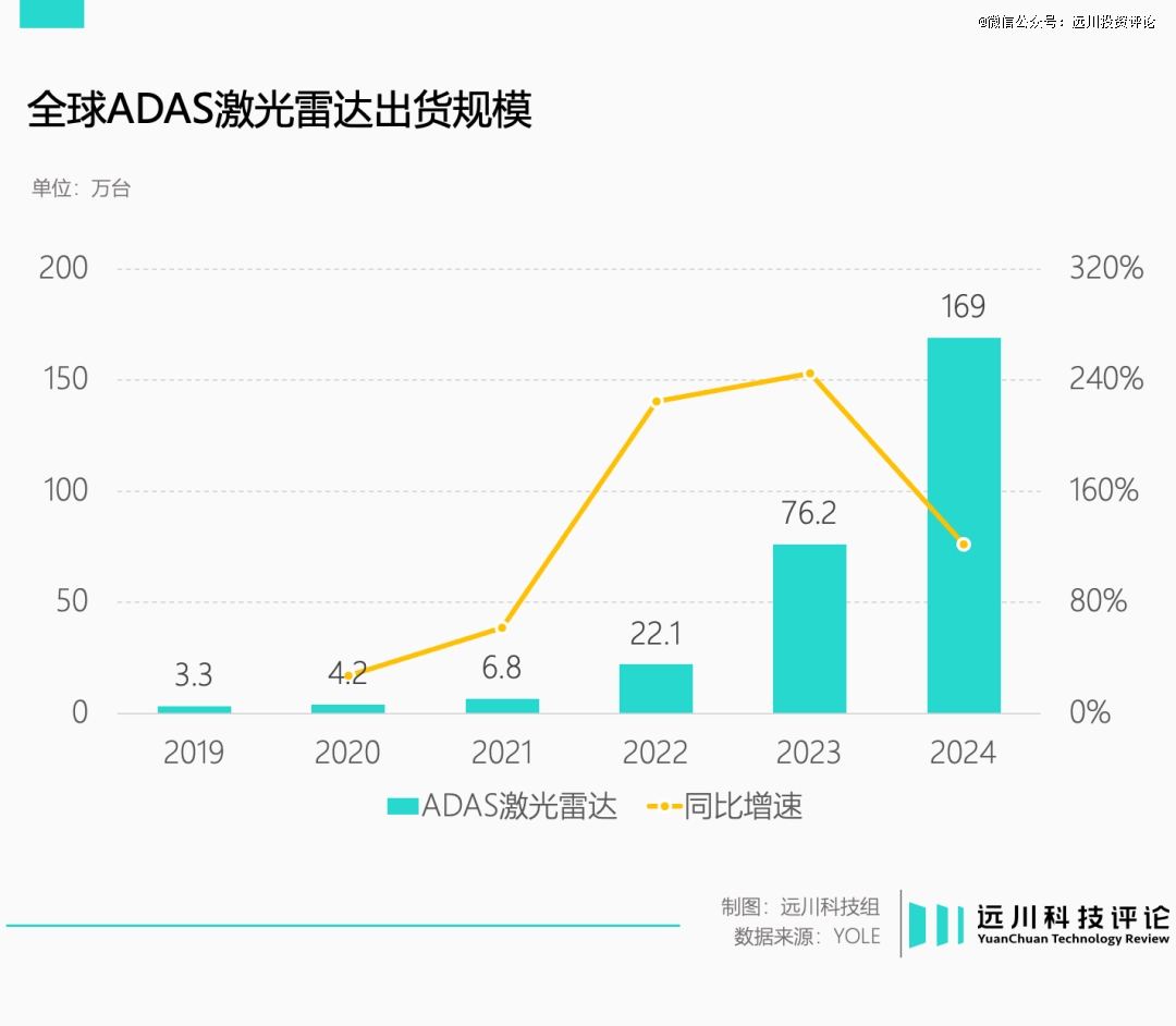 按照Yole统计[4],去年乘用车激光雷达搭载量达到169万台。这是什么概念?意味着激光雷达厂商用爱发电十多年,放在9000万辆的全球销量大盘里,渗透率还不到2%。