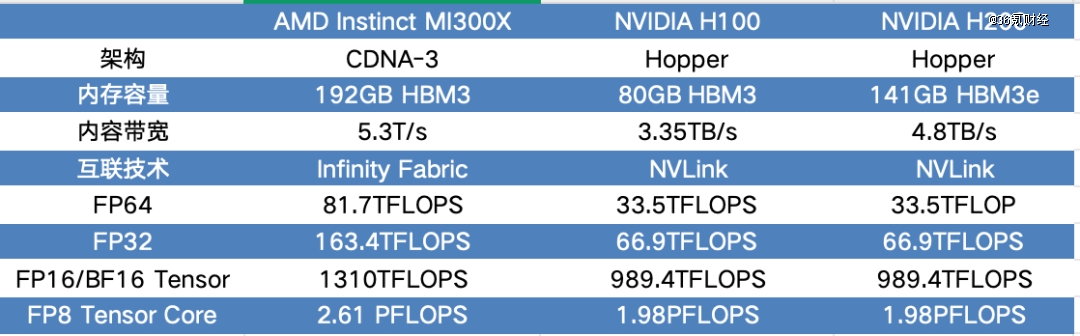 图:英伟达和AMD AI芯片对比 数据来源:36氪整理